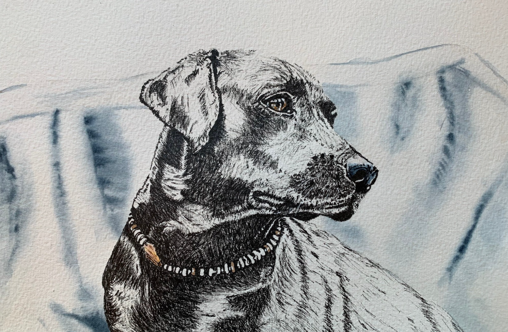 I work in my garden from my shepherds hut studio. Intuitively experimenting with techniques, colour, contrast and style. I use watercolour, acrylic, pen and pastel depending on how I feel at the time. Each piece of art leads the way and I follow the idea and different mediums, to wherever they take me.